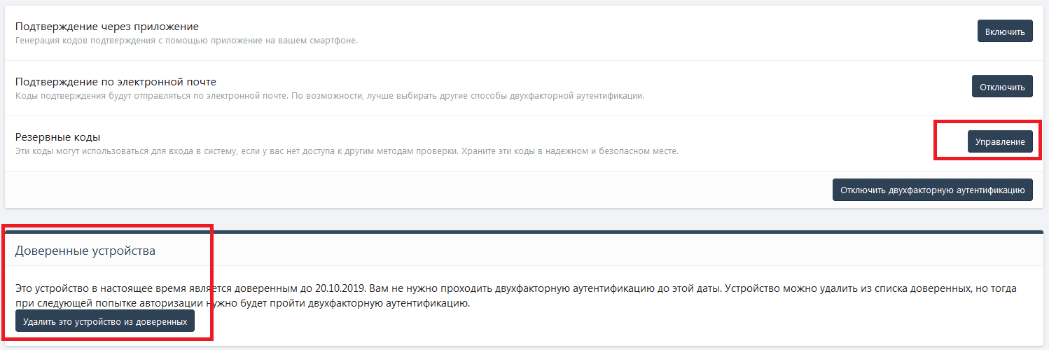 Дополнительно вы можете добавить ваш отпечаток браузера в "Доверенные" на 30 дней. Если отпечаток совпадает, у вас не будут запрашиваться коды.
