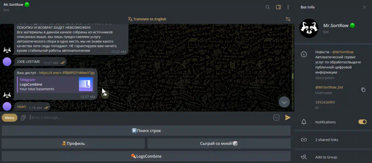 Купил подписку в боте, который он пиарил на форуме, а именно - "LogsCombine".
