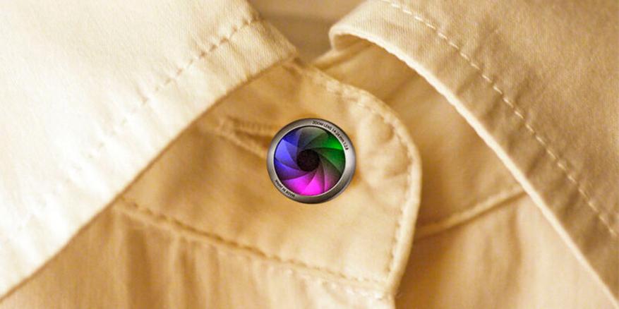 Фотоиллюстрация того, как могла бы выглядеть камера на пуговице рубашки.