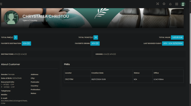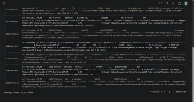 All flights from 2018 to 03.06.2025, passenger information e-mail,name,surname,travel date, amount paid, document information, phone number...