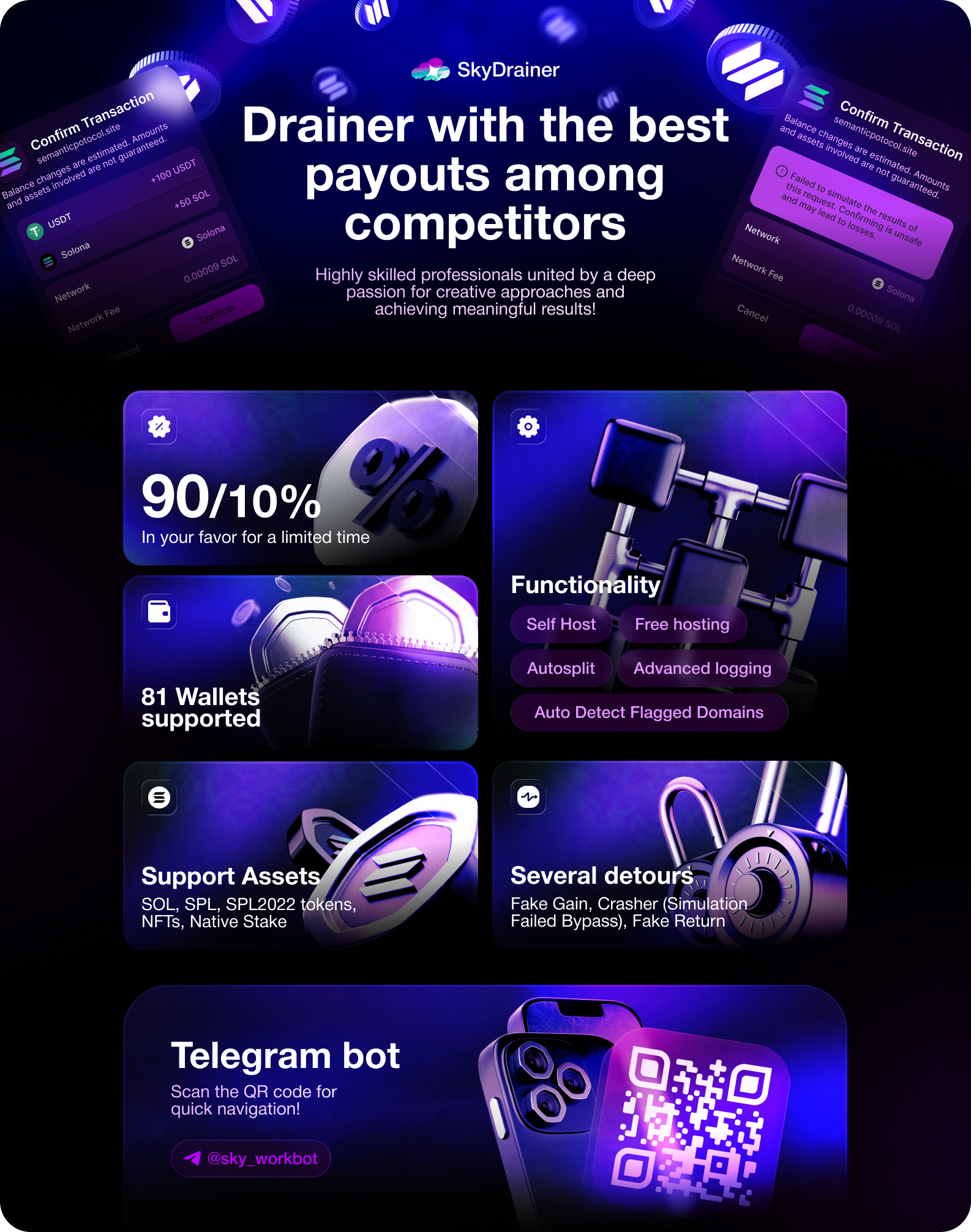 Дрейн SOL, SPL, SPL2022 Токенов, НФТ и нативный stake в один клик