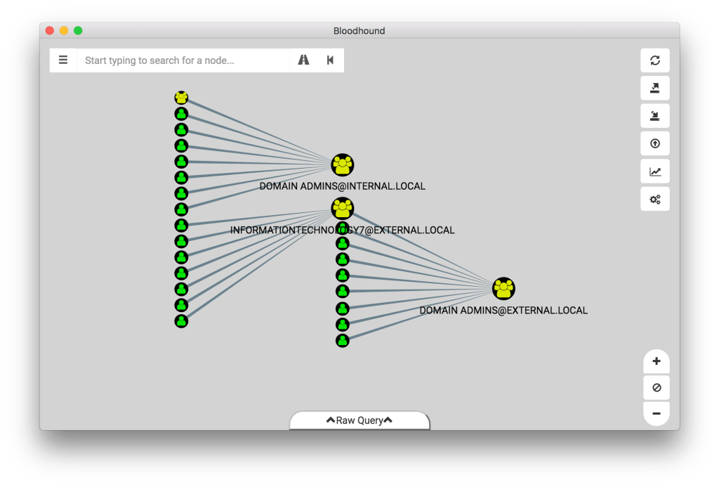 Доказательство концепции, которую я придумал для этой проблемы, было разработано с одной целью - автоматизировать процесс поиска кратчайшего пути к компрометации администратора домена, не записывая ничего на диск или не требуя автономного анализа. Таким образом, дизайн этого графика может оказаться неприемлемым для других