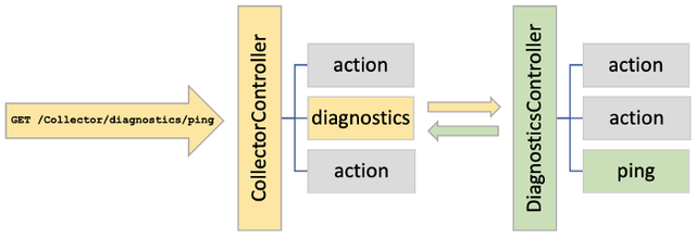 По сути, здесь происходит следующее: CollectorController сначала обрабатывает входящий HTTP-запрос, и вызывается действие диагностики. Затем запрос передается в DiagnosticsController, который сгенерирует ответ.