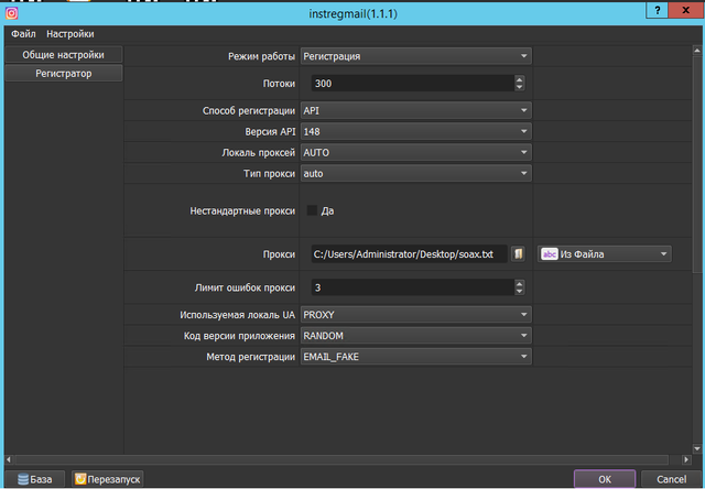 (есть возможность использовать рандомные почты - 100 штук почт разовая покупка и дальше можно регистрировать постоянно)