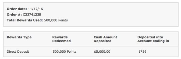 The next test was to see if their system would actually allow the withdrawal of the points into cash. If this were to be possible the potential ramifications of this issue would be extremely severe. I attempted to deposit $5,000 USD directly into a checking account. This also worked, and was not flagged.