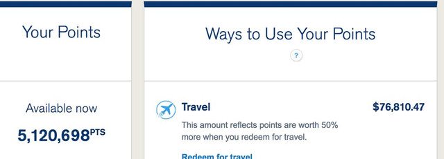 I failed to take a screenshot of the card with the negative balance, but at the time the points summary showed 120,698 available points, but one card had 5,120,698 points, and the other had negative -5,000,000 points. I knew that Chase had a rule where if you cancelled a card that had a positive rewards points balance that those points would vanish, and I suspected the same would happen if I had a negative points balance.
